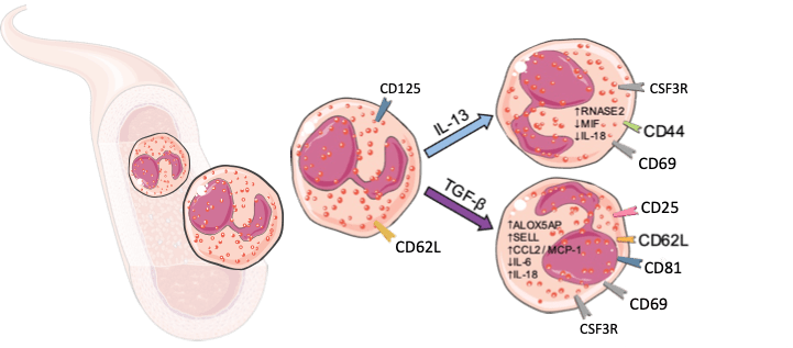 By understanding the phenotypes and functional properties of specialized eosinophils, we hope to be able to identify patients whose biopsies contain pro-inflammatory (damaging) eosinophils, who are most likely to respond well to eosinophil depleting therapies.